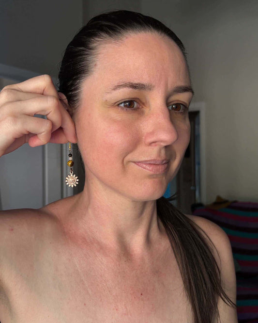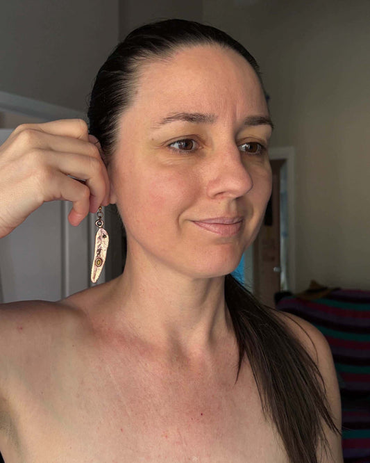 Tiger Eye Real Gumtree Leaf Earrings - Copper