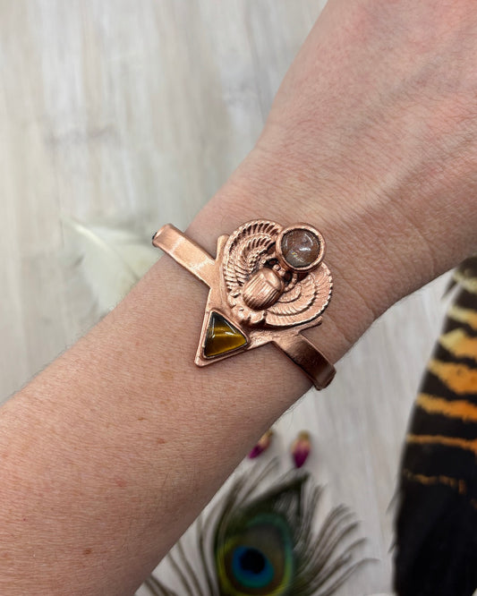 Scarab Beetle Tiger Eye / Sunstone Copper Bracelet