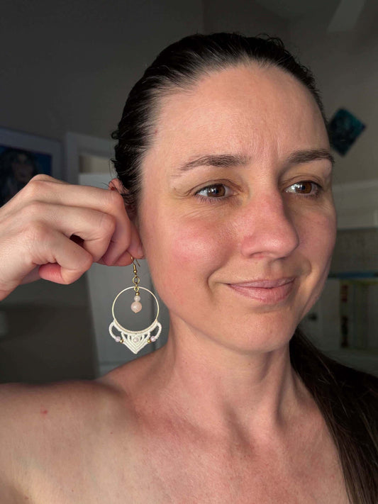 Big Macrame Rose Quartz Hoop Earrings - Made To Order