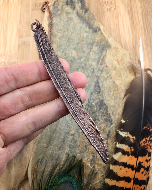 Embrace the beauty of bird jewelry with my Real Feather Necklace Collection. Featuring real feathers, ethically sourced by my own hand and preserved through the delicate process of copper electroforming. Then finished with an antique copper patina giving them a rustic ancient look.