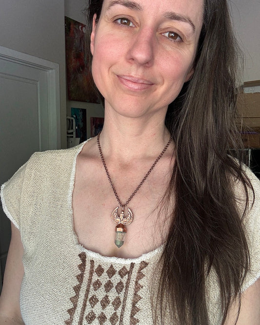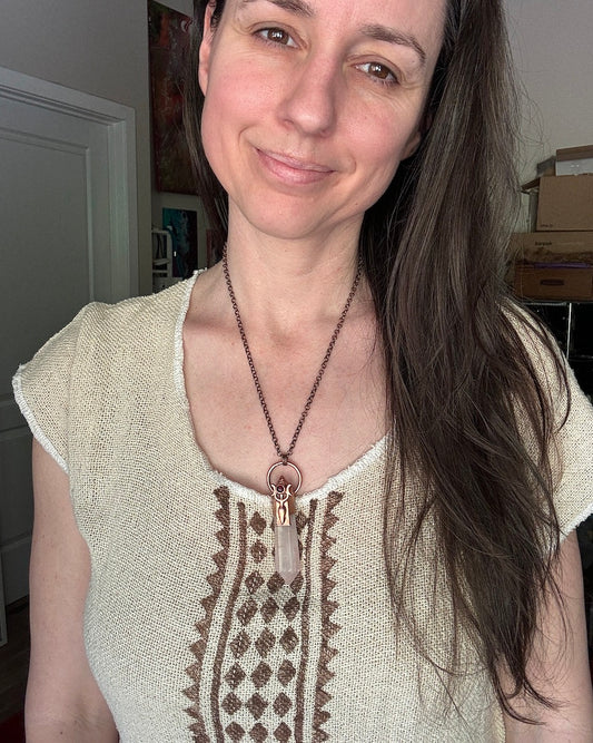 Egyptian Goddess Pendant & Clear Quartz Point with Inclusions - Copper Electroformed