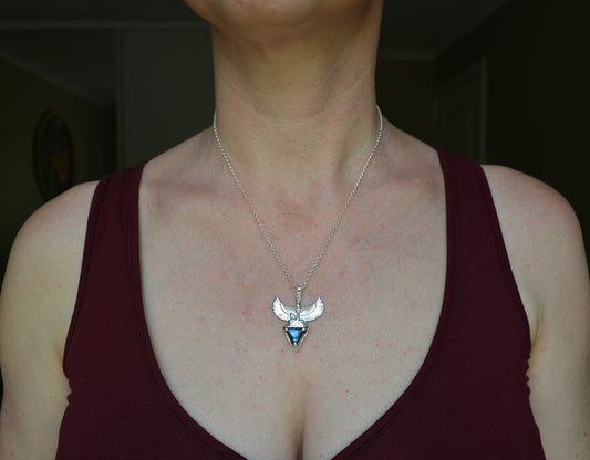 Sterling Silver Egyptian Goddess Rainbow Moonstone Necklace