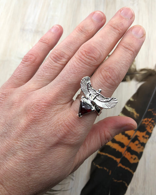 Sterling Silver Egyptian Goddess Garnet Ring - 8 US