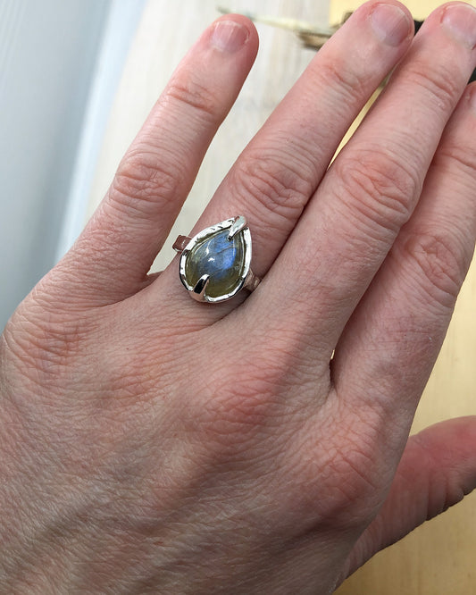 Labradorite Molten Sterling Silver Ring - 7.5 US