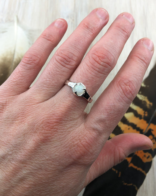 Rainbow Moonstone Sterling Silver Textured Ring - size 7.25 US