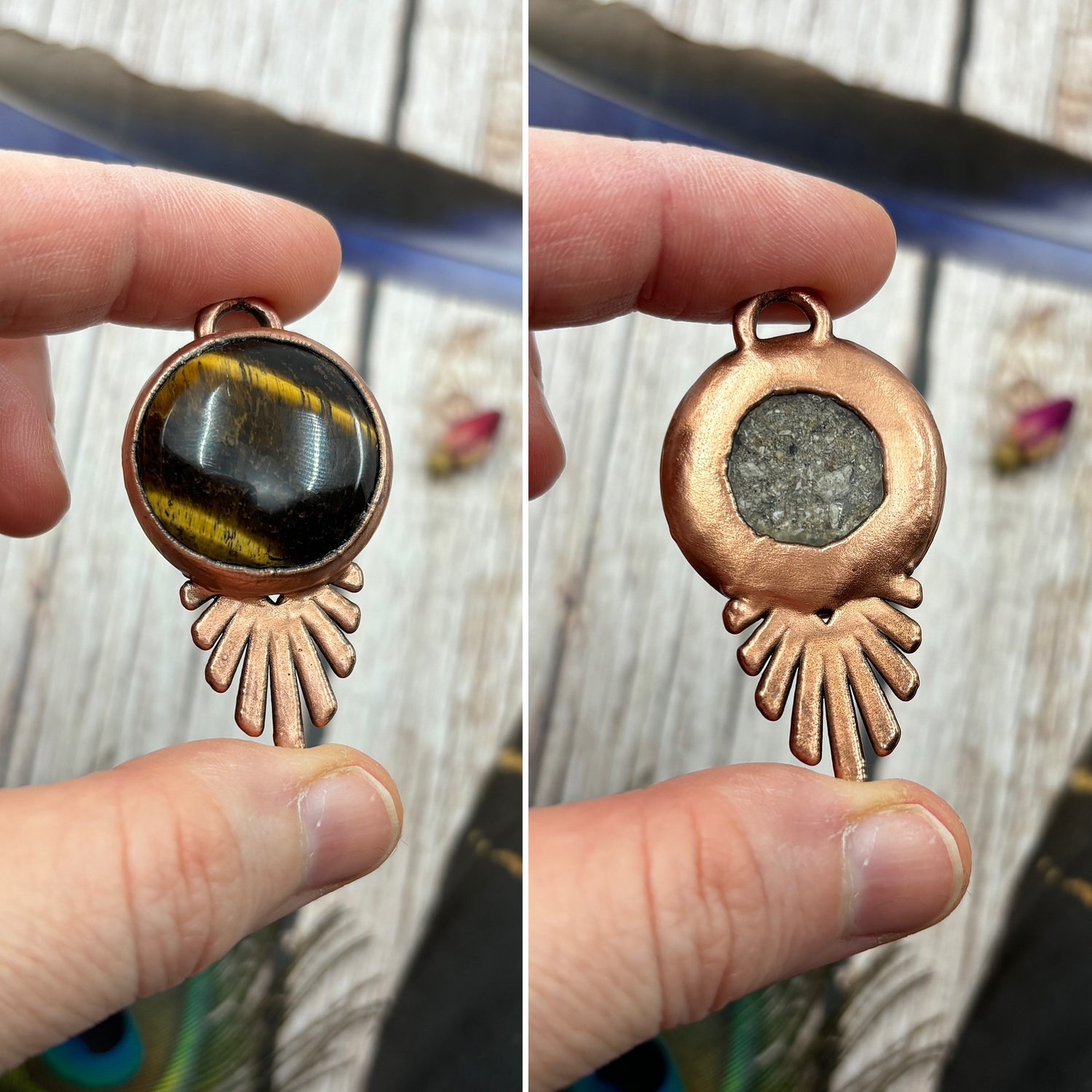 With this design you have the freedom to custom make a crystal pendant from my copper range and I can add the ashes to the back. We can go as simple or elaborate as you like. You can get inspiration from the pieces in my shop HERE or have a look at past designs on my Instagram page HERE.