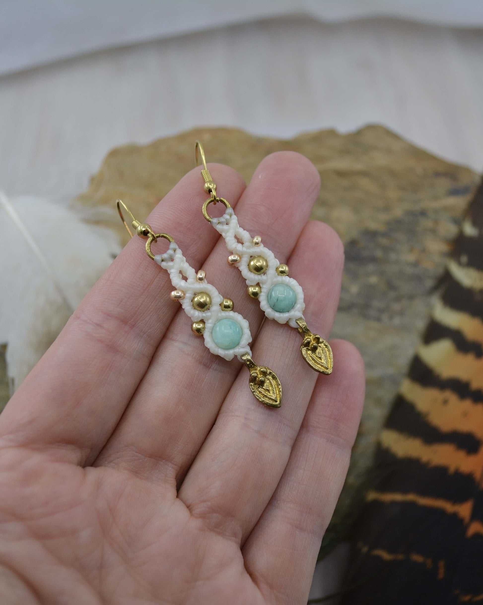 These gorgeous Amazonite macrame drop earrings are made using the ancient art of knot tying called macrame.