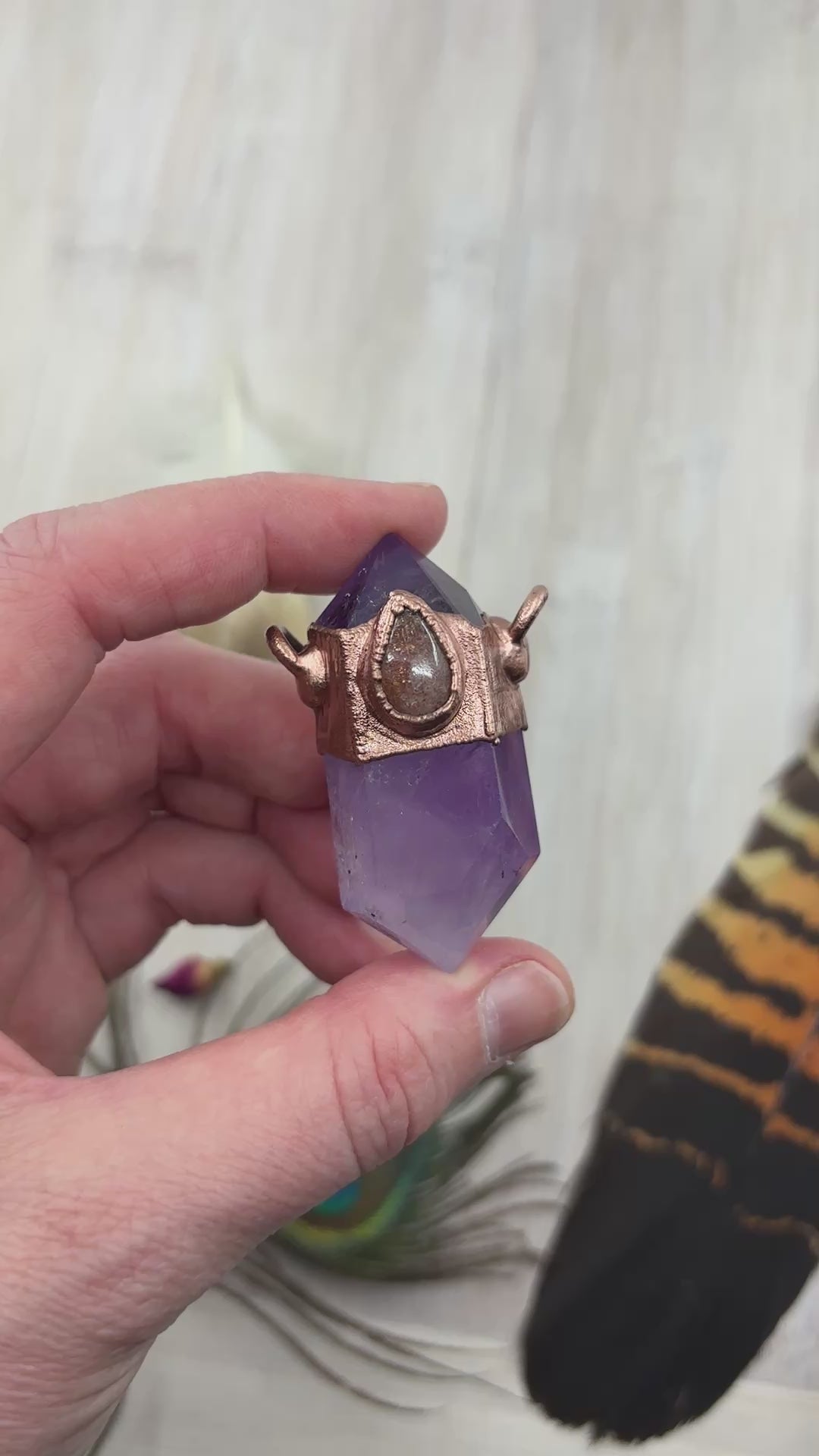 Amethyst & Sunstone Pendant - Copper Electroformed