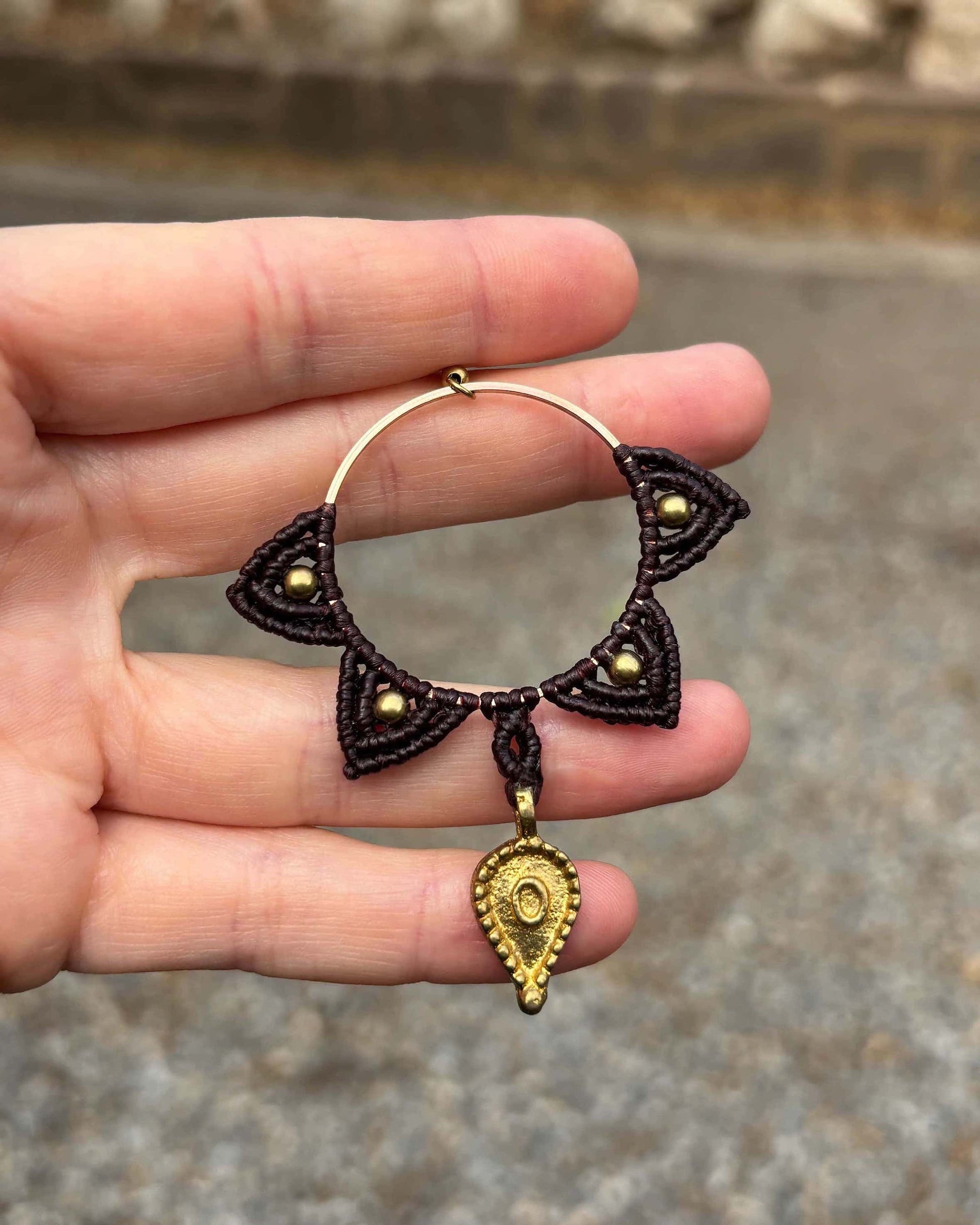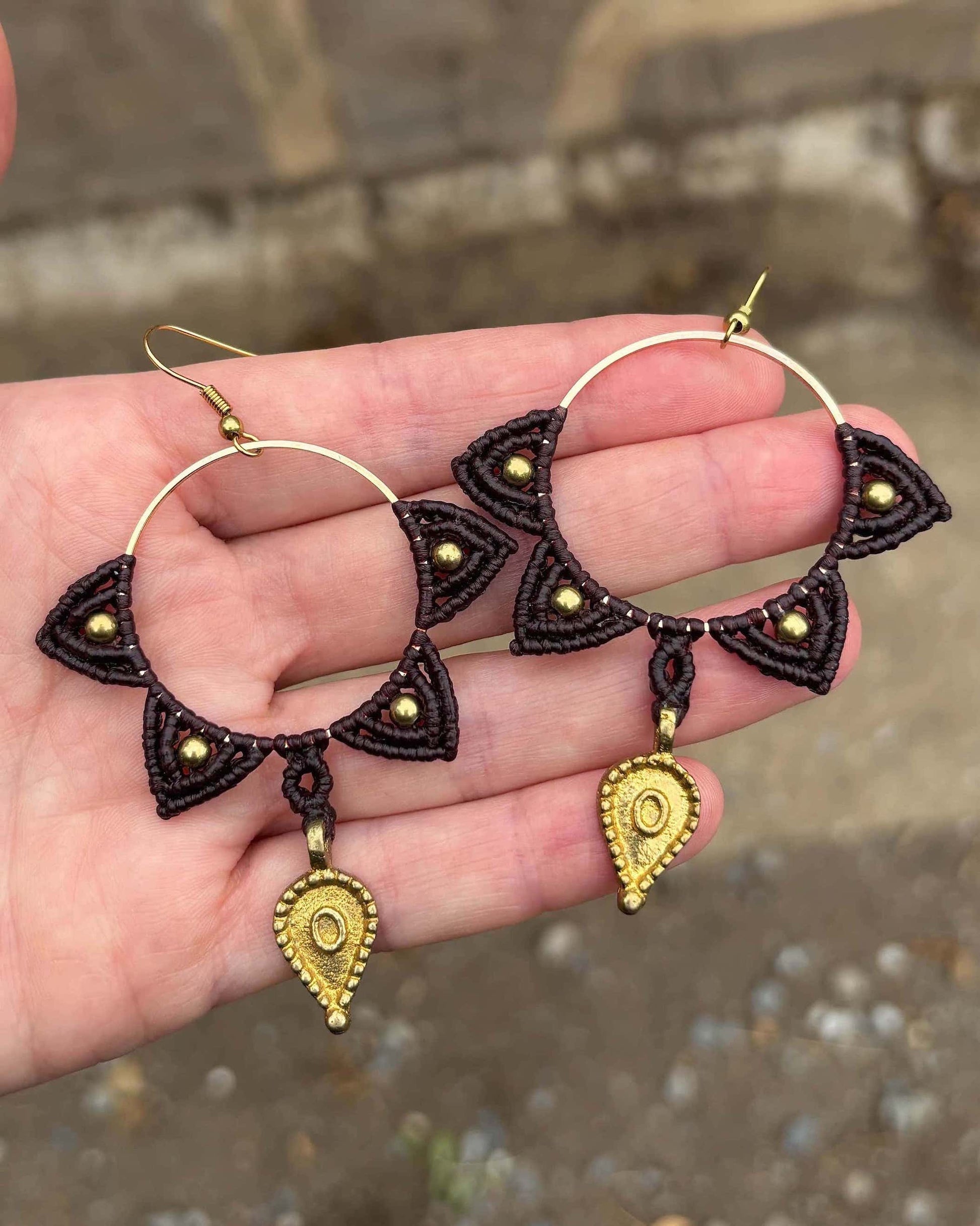 These gorgeous big macrame mandala hoop earrings are made using the ancient art of knot tying called macrame.