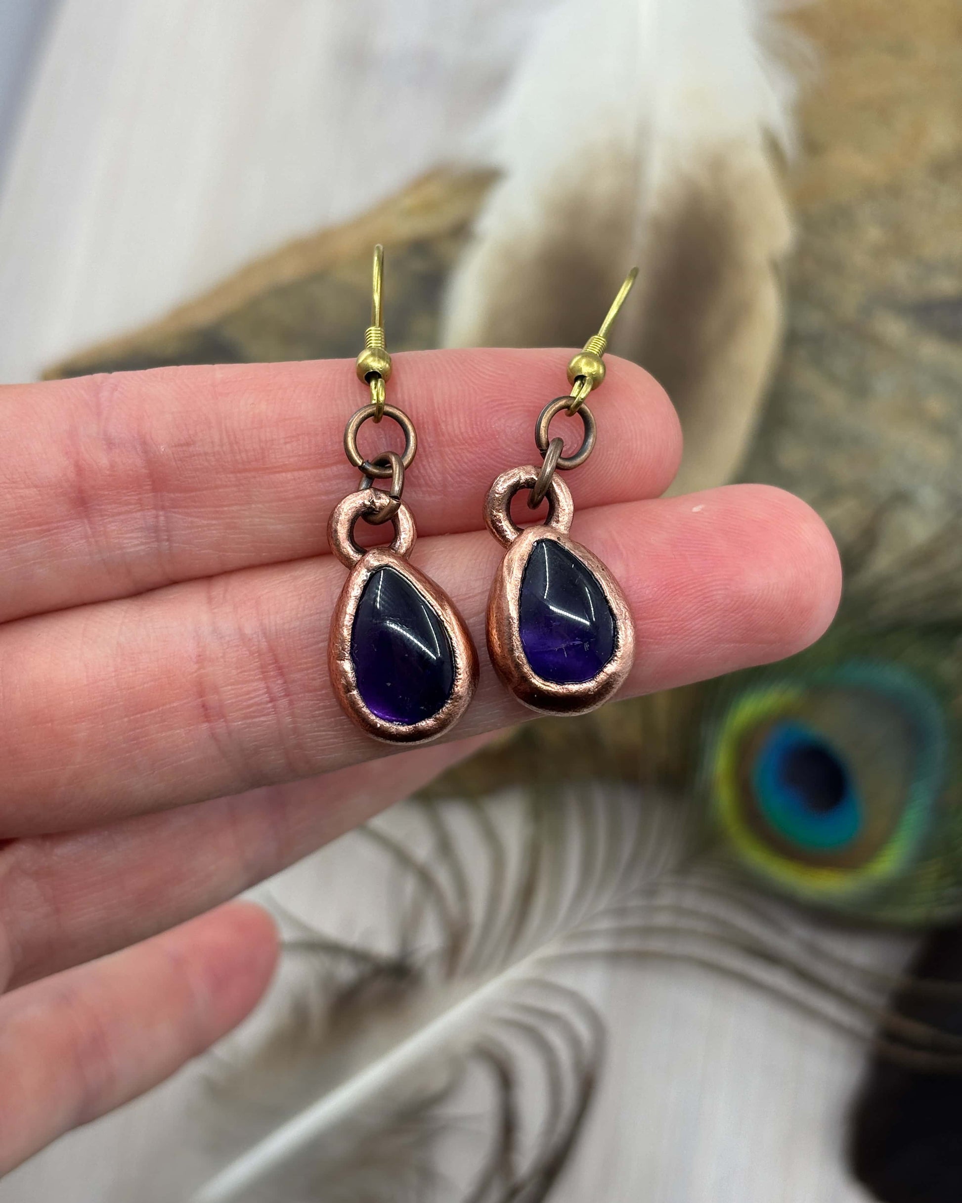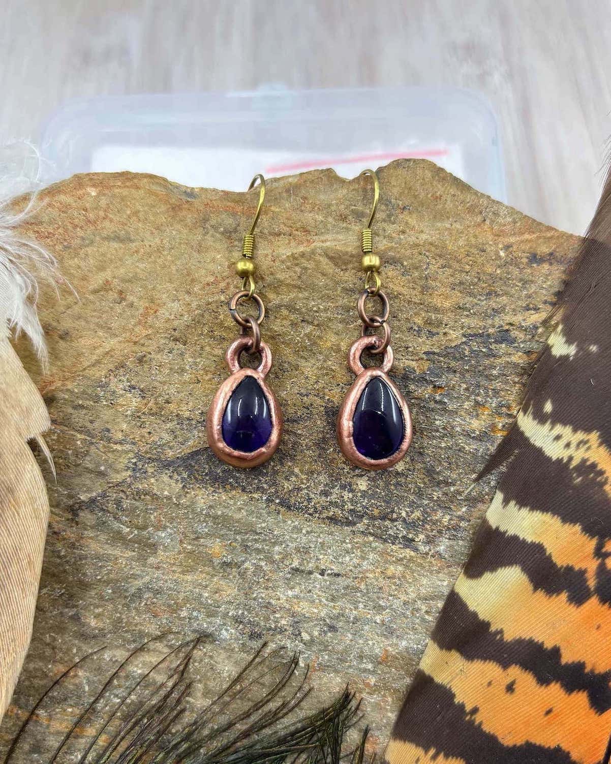 Amethyst Drop Earrings - Copper