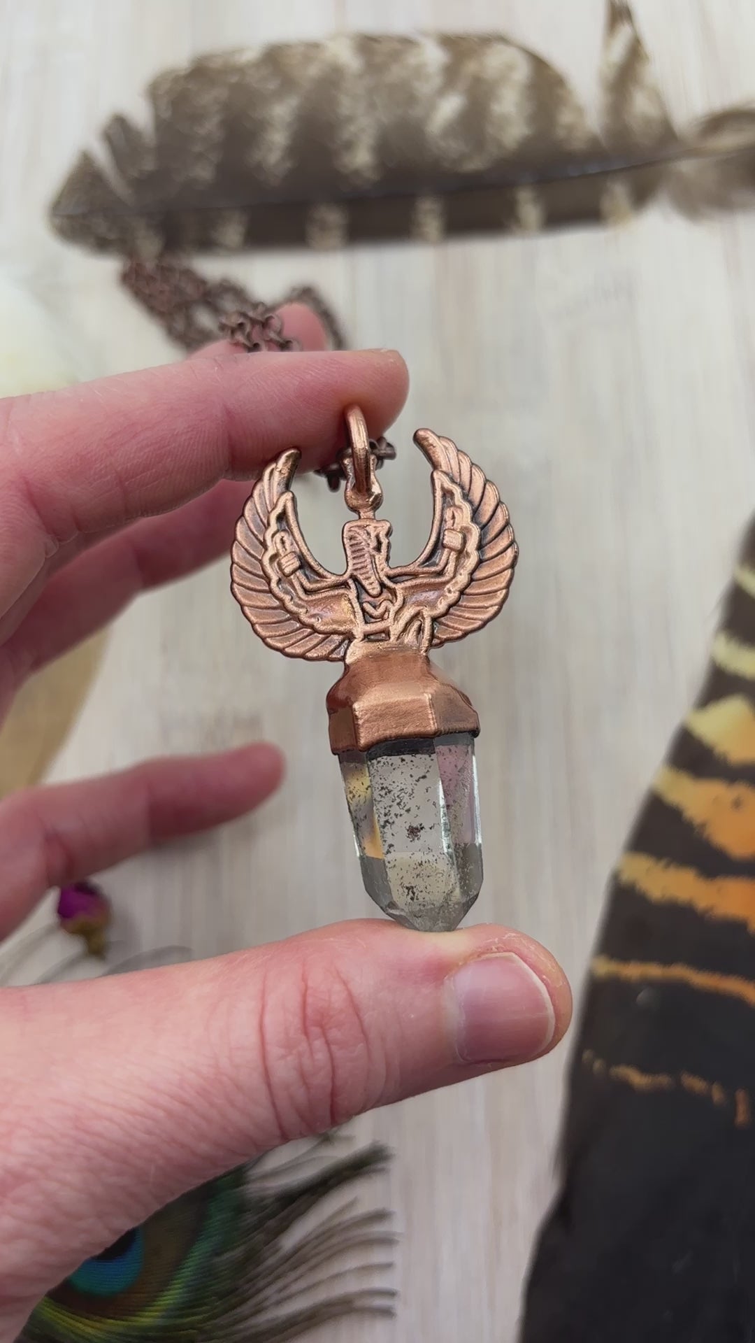 Egyptian Goddess Pendant & Clear Quartz Point with Inclusions - Copper Electroformed