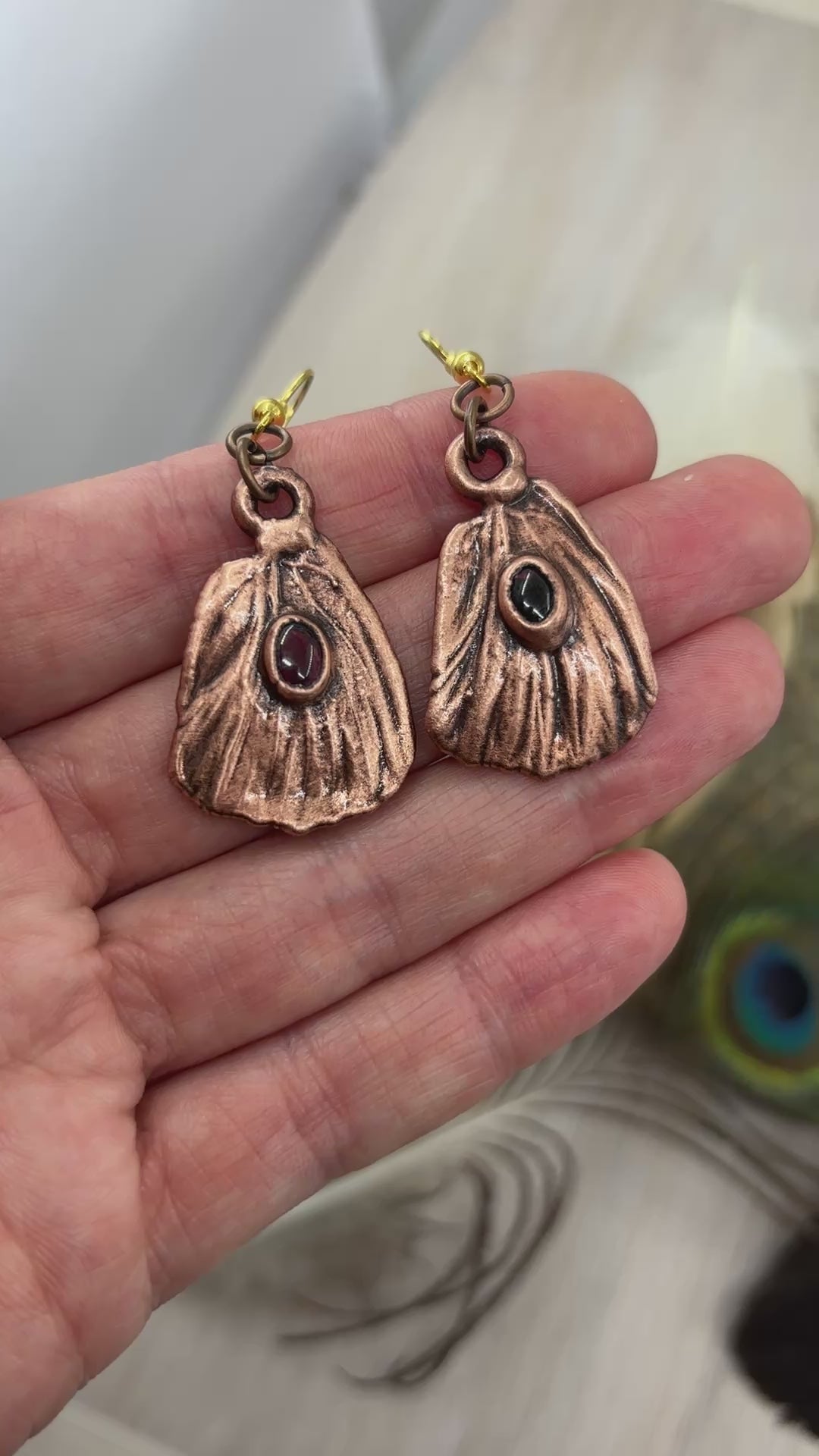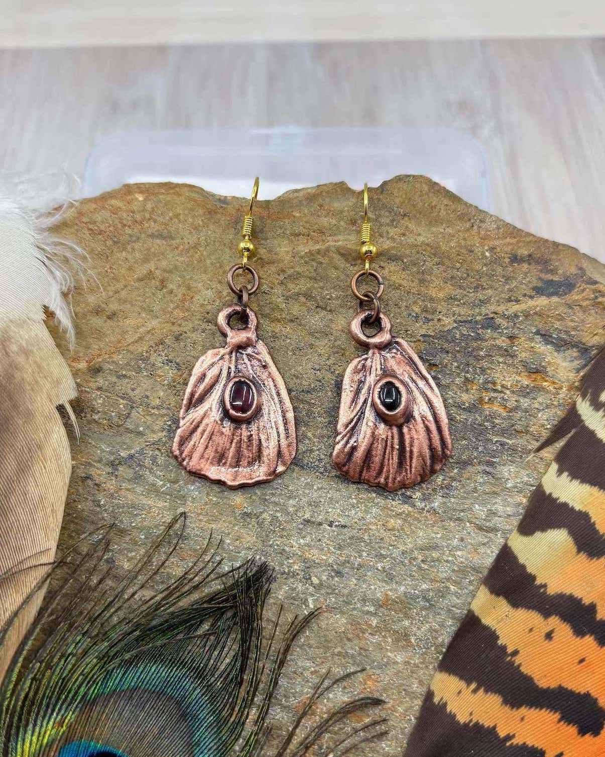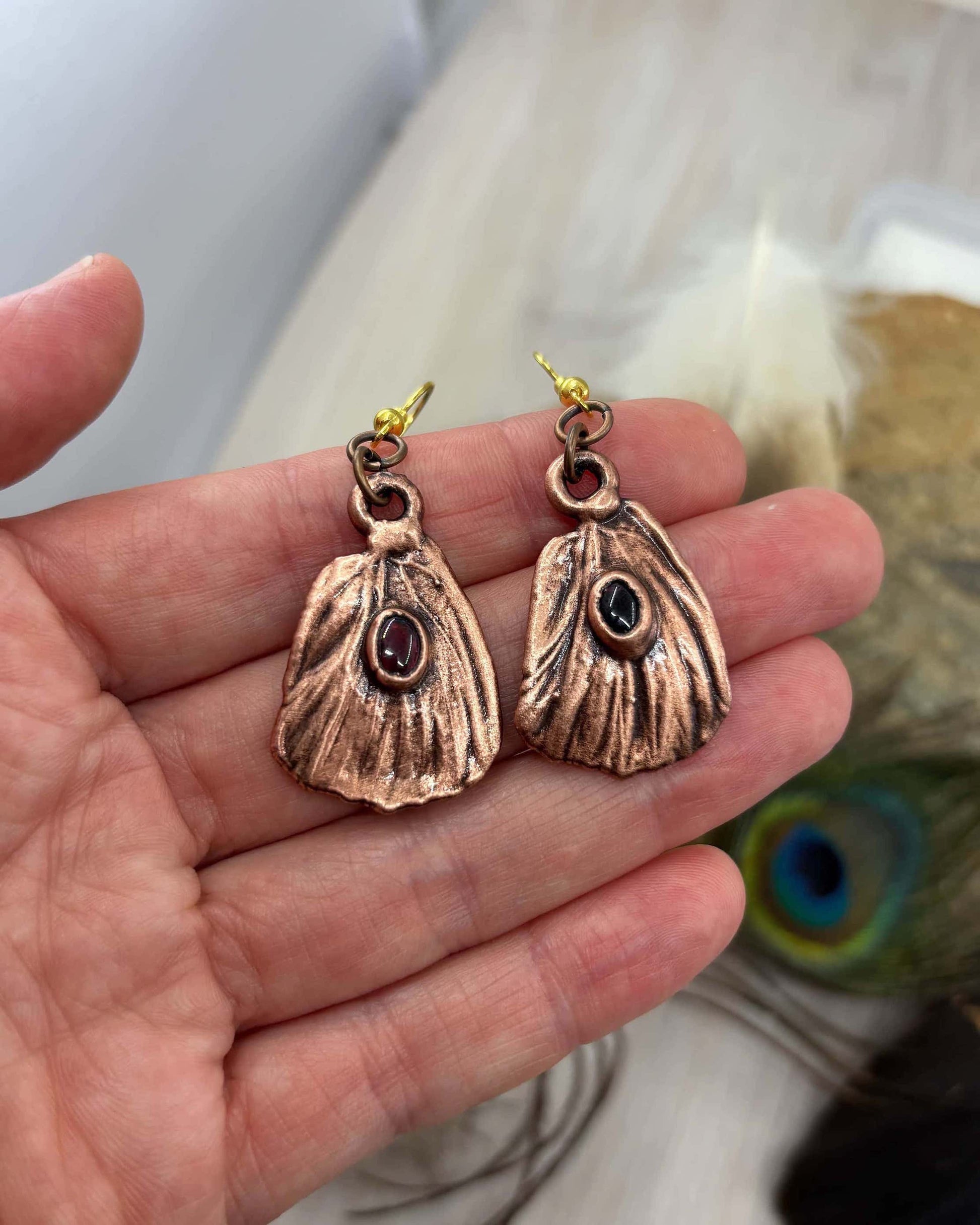 These Garnet Real Butterfly Wing earrings have been created using the art of electroforming. Inside the copper are the real wings.