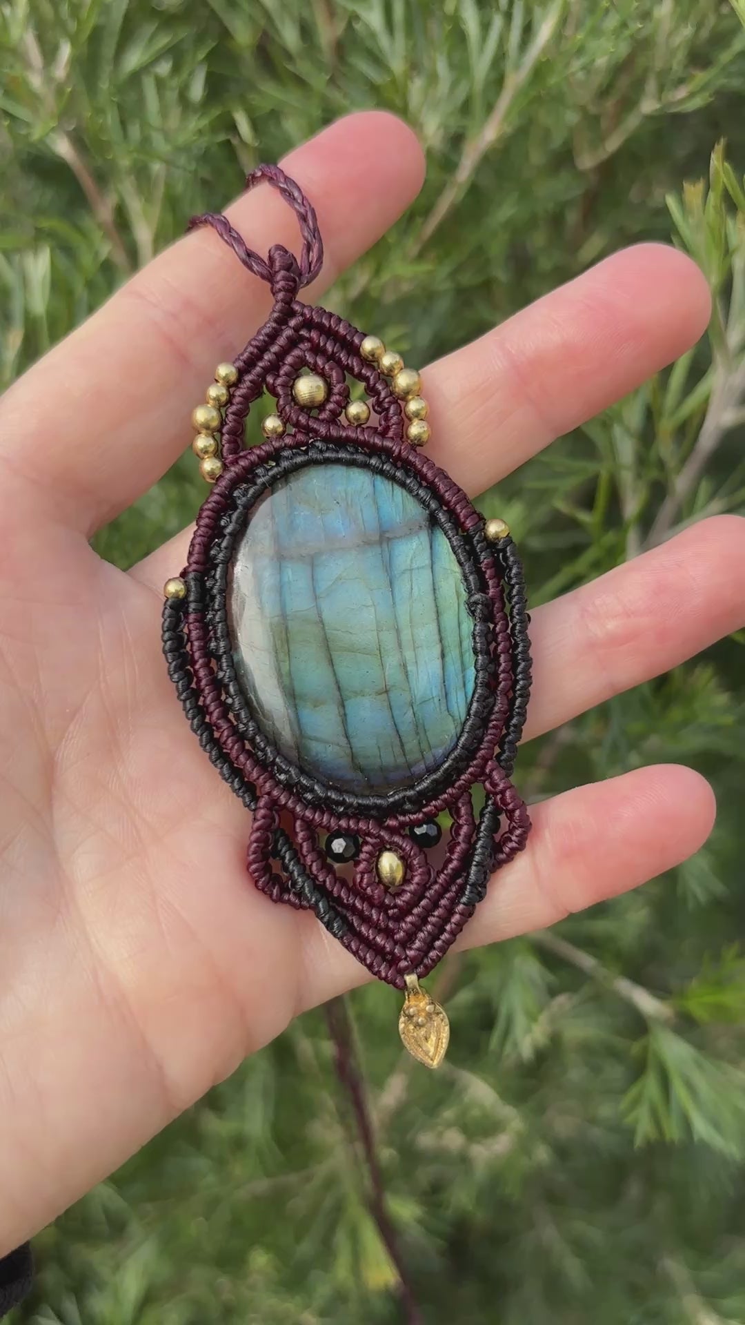 This Labradorite Macrame Amulet Pendant has been hand made using the art of knot tying called macrame.