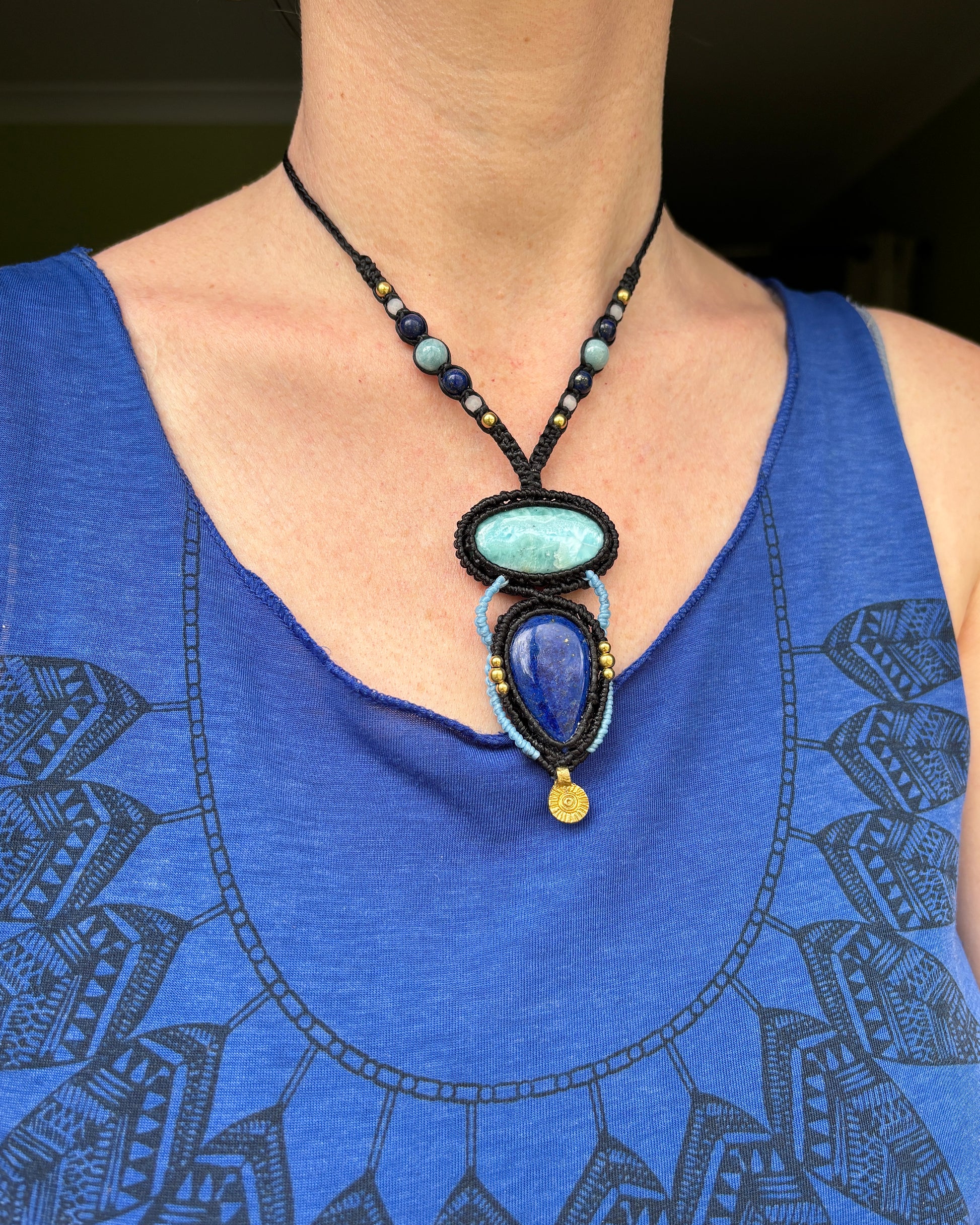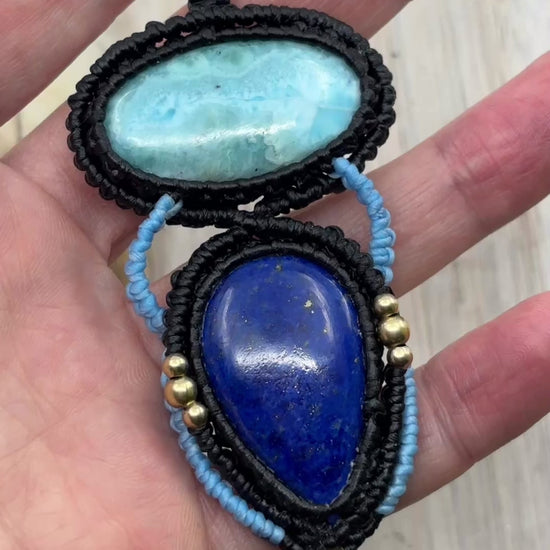Lapis Lazuli and Larimar Macrame Amulet Pendant