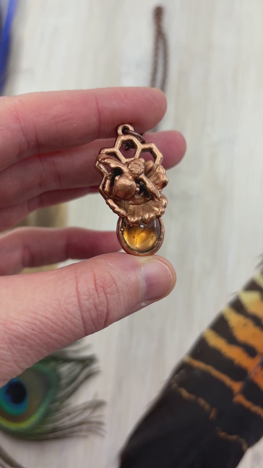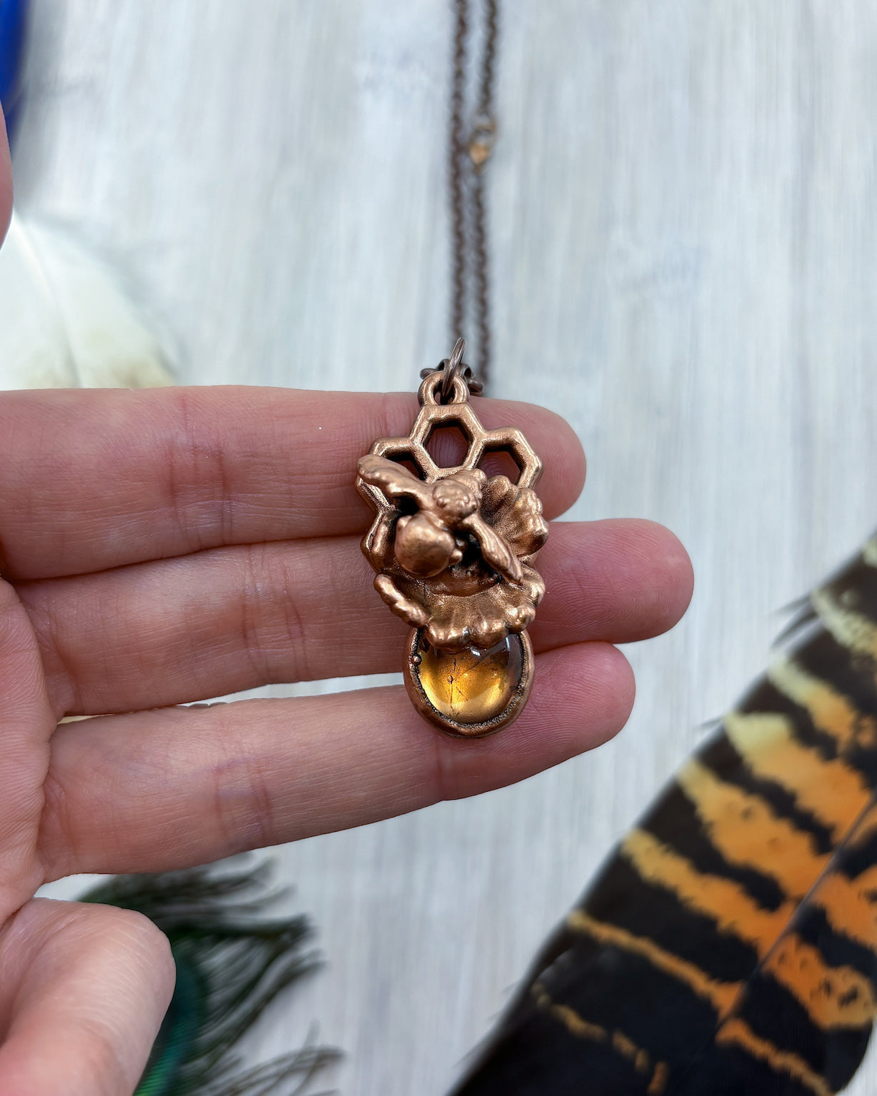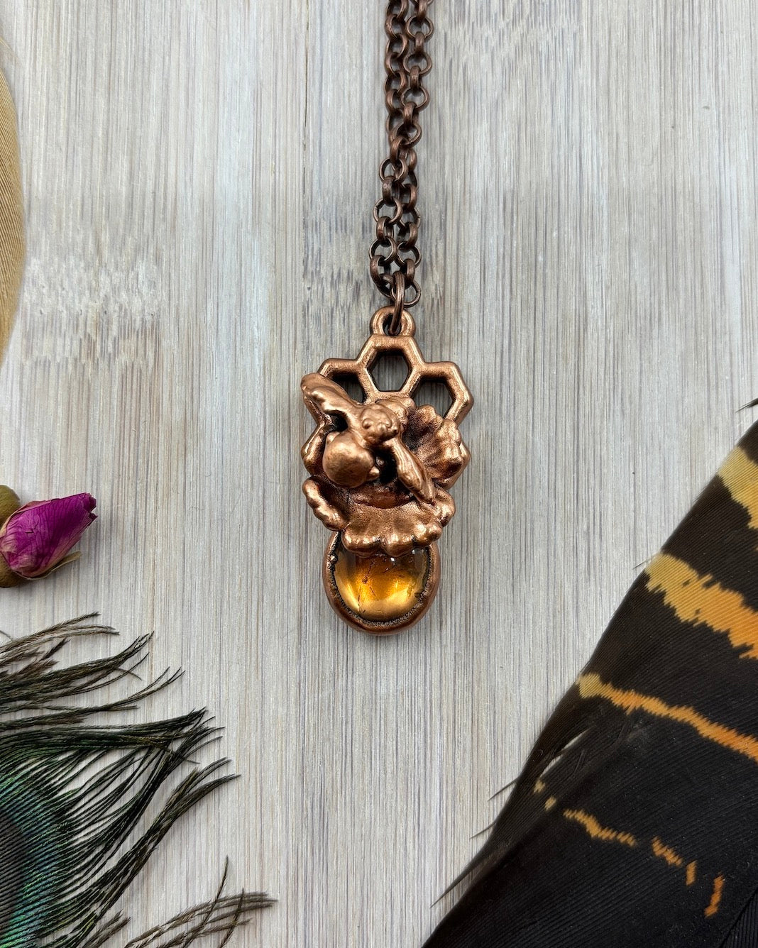 REAL Bee & REAL Flower Pendant With Copper Backed Citrine - Copper Electroformed