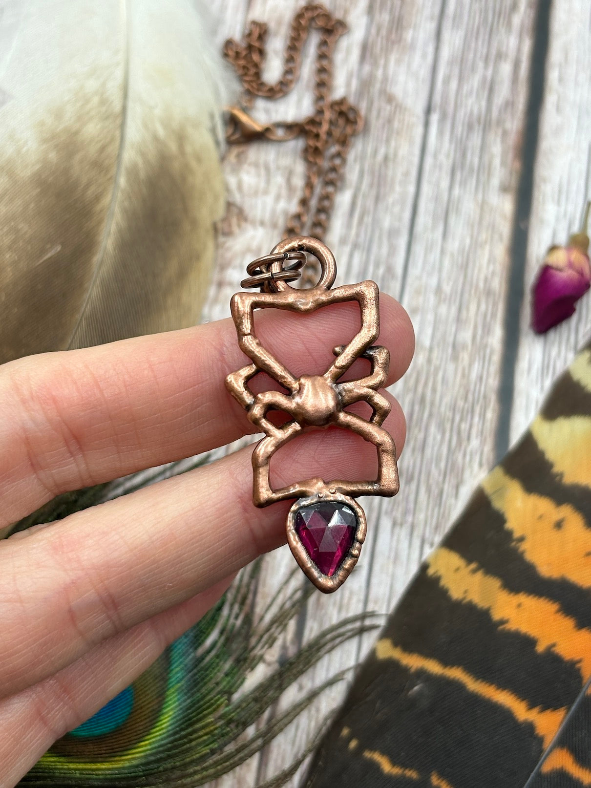 REAL Red Back Spider Necklace with Faceted Garnet - copper electroformed