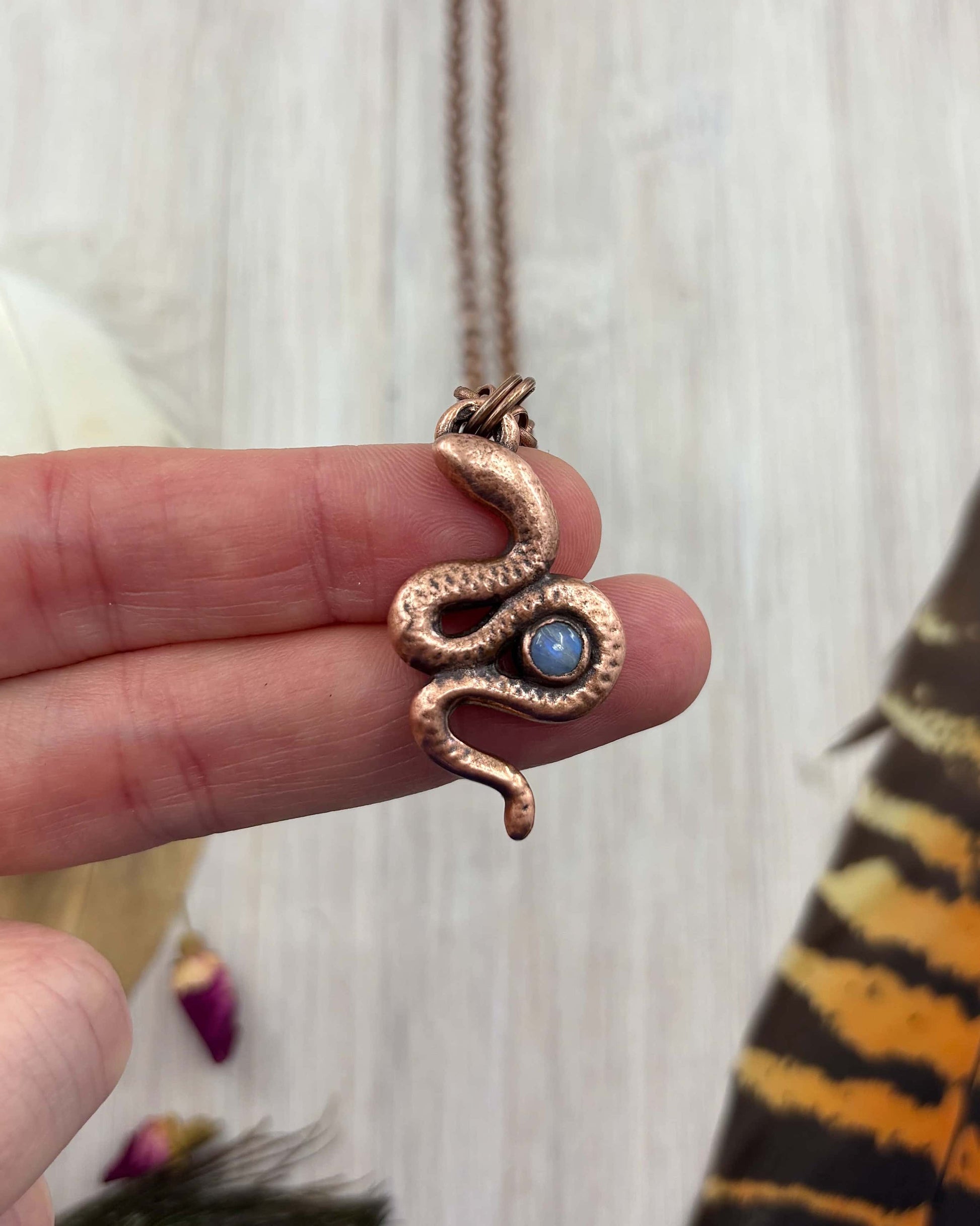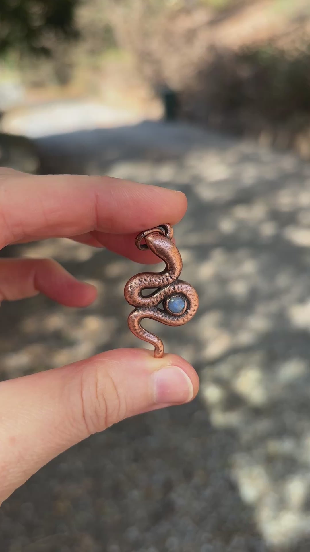 Snake With Rainbow Moonstone Pendant - Copper Electroformed