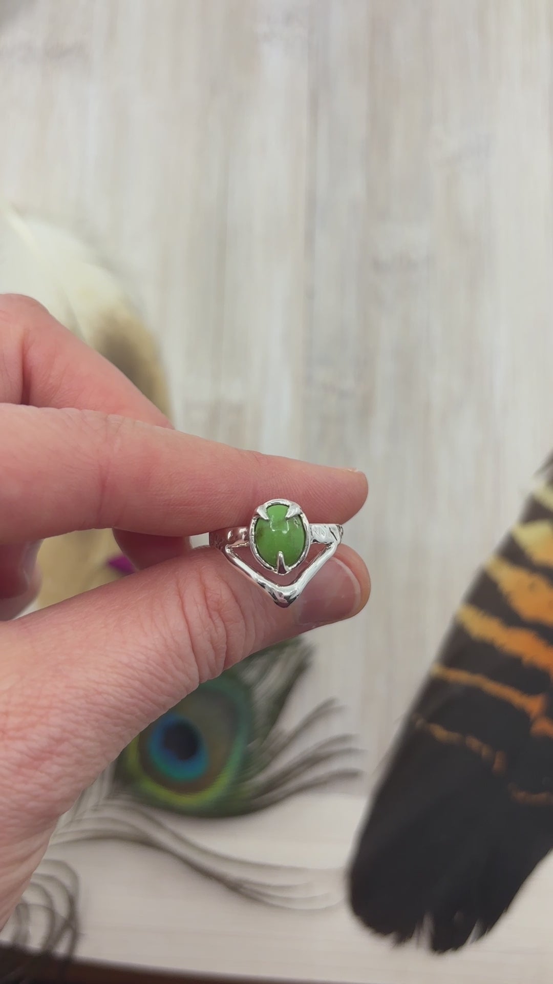This Sterling Silver Sonoran Gold Green Turquoise Ring has been hand sculpted using the lost wax jewellery method & cast in solid sterling silver. It was created with a molten like effect on the band, giving its unique look.