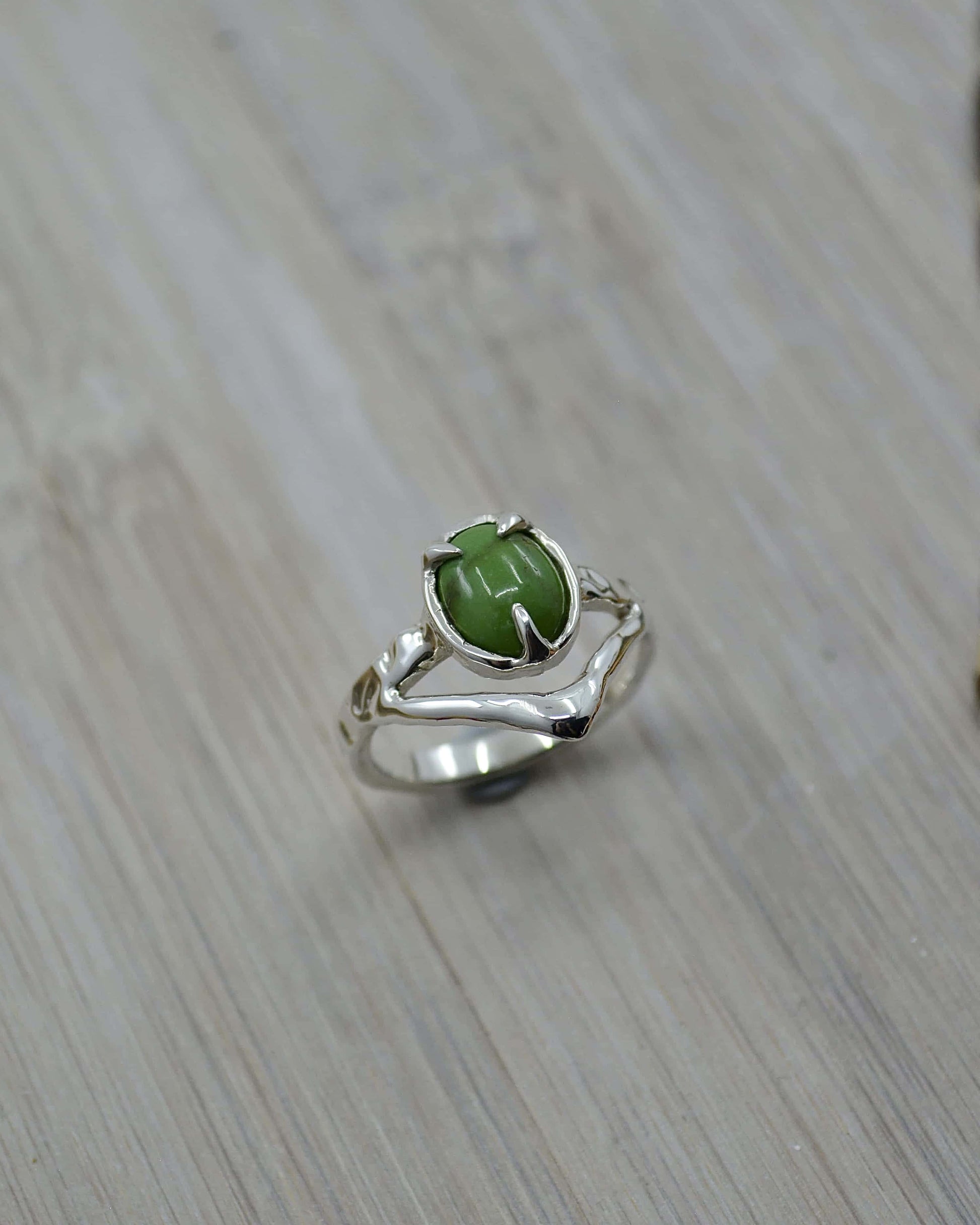 Lost wax jewellery is a method that has been used for thousands of years. I meticulously create a model of the ring using a jewellers wax, it gets sent to a casting house where I have it cast in sterling silver. Once it's returned to me it goes through the sanding & finishing process. The stone is then set and a final buff is done to bring up a beautiful sheen.
