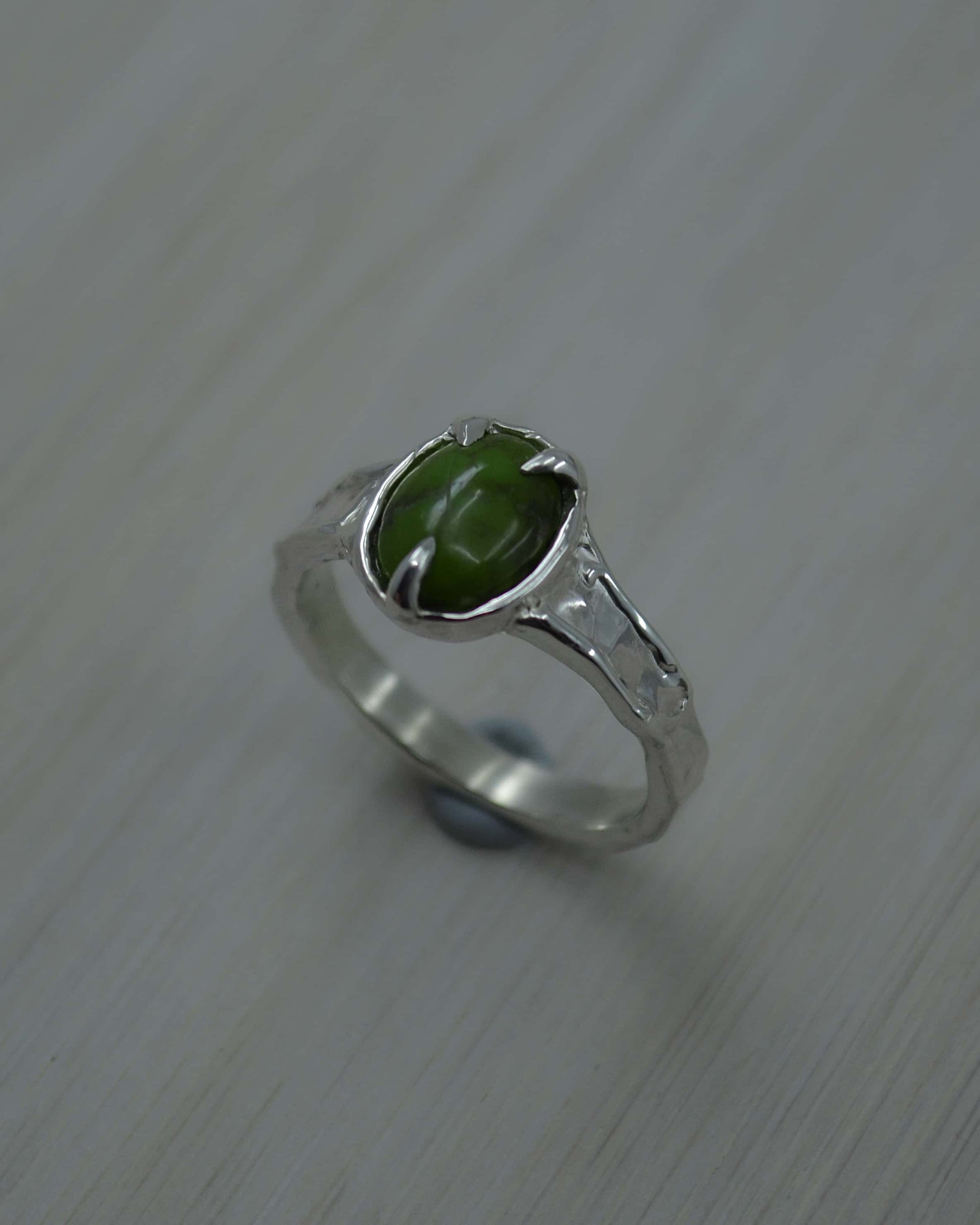 Lost wax jewellery is a method that has been used for thousands of years. I meticulously create a model of the ring using a jewellers wax, it gets sent to a casting house where I have it cast in sterling silver. Once it's returned to me it goes through the sanding & finishing process. The stone is then set and a final buff is done to bring up a beautiful sheen.