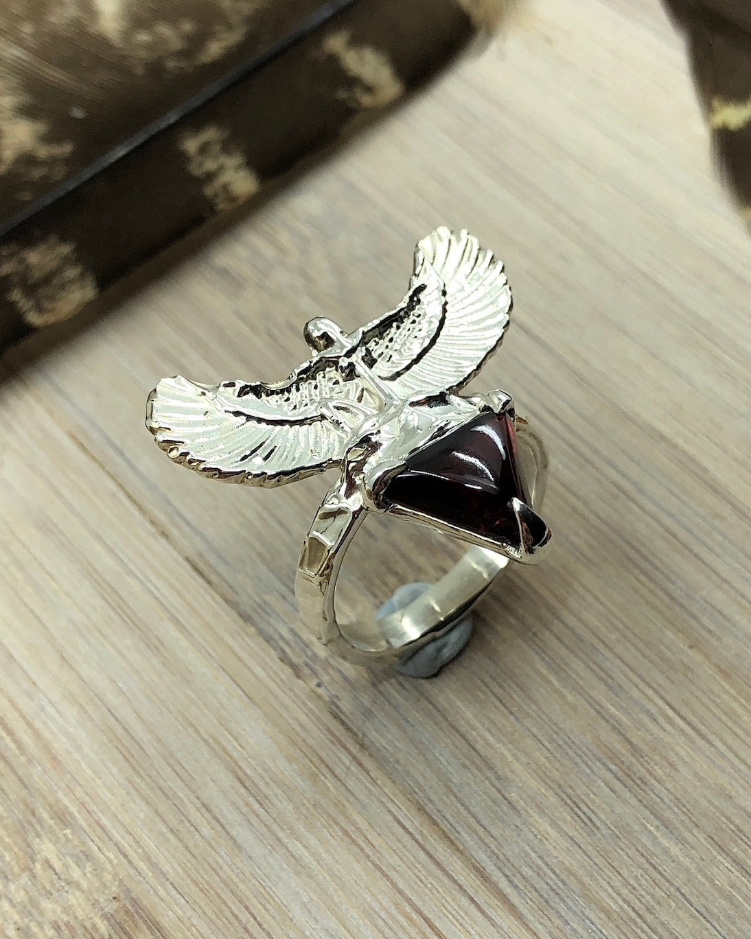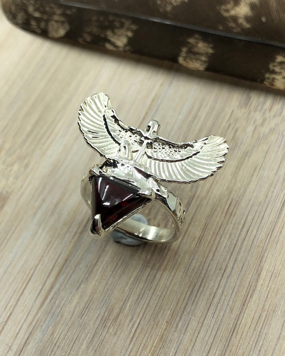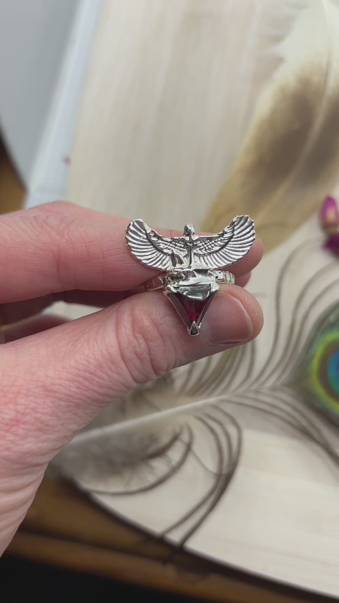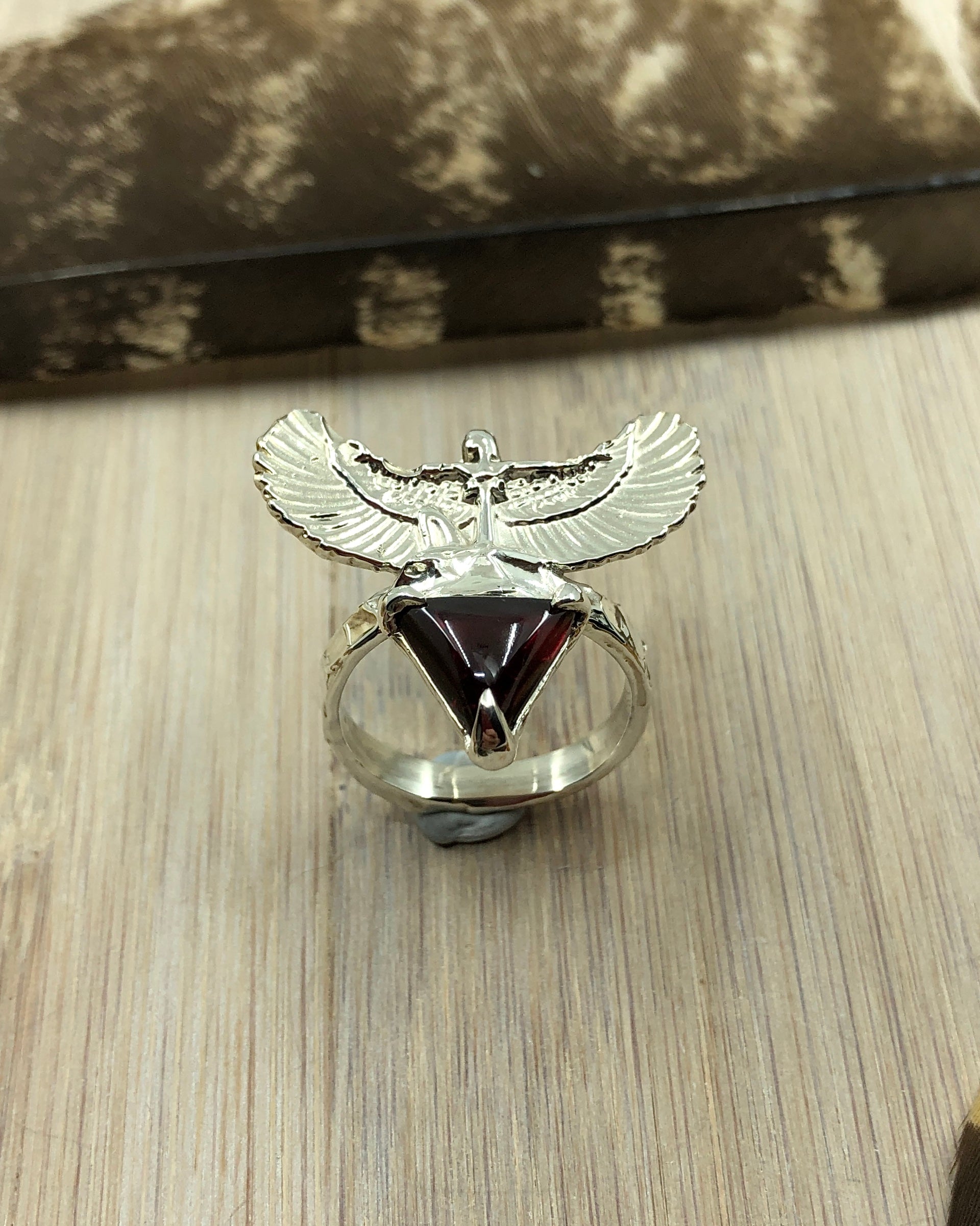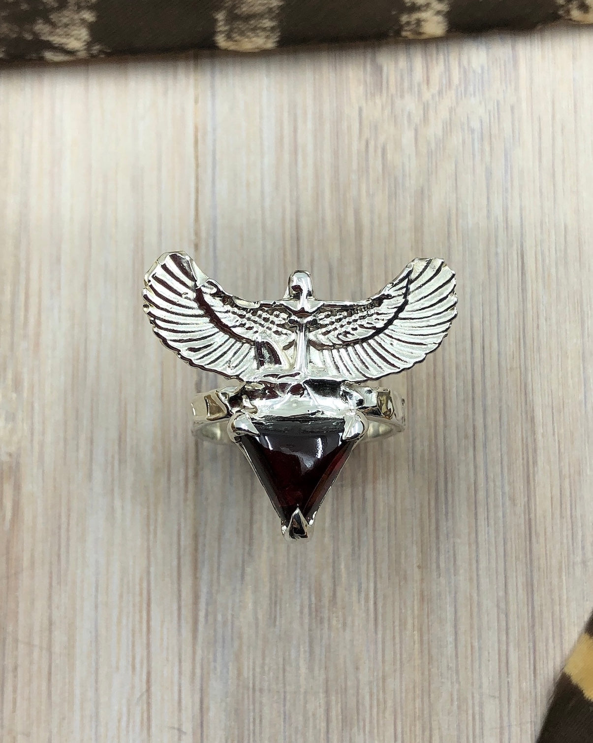 Sterling Silver Egyptian Goddess Garnet Ring - 8 US