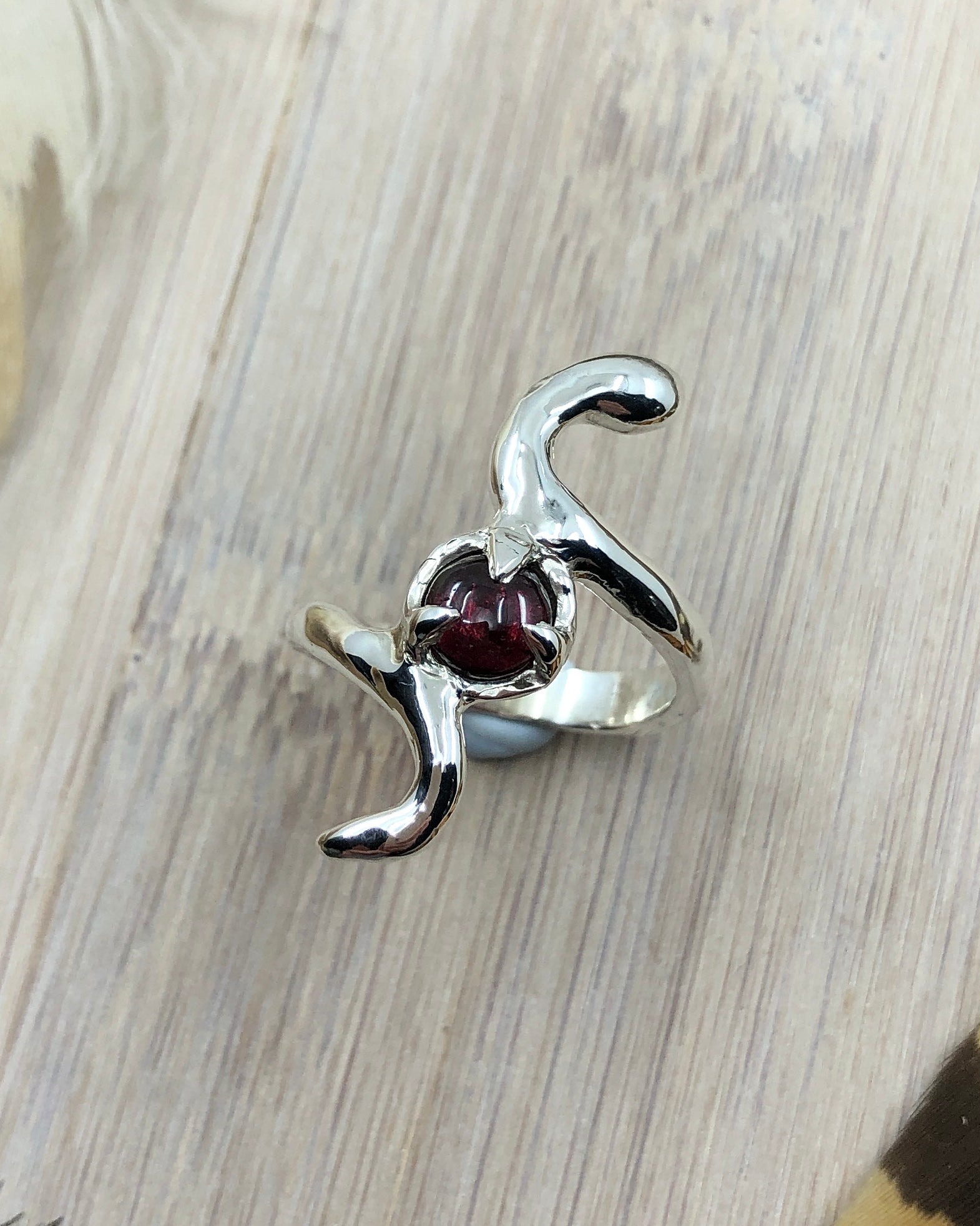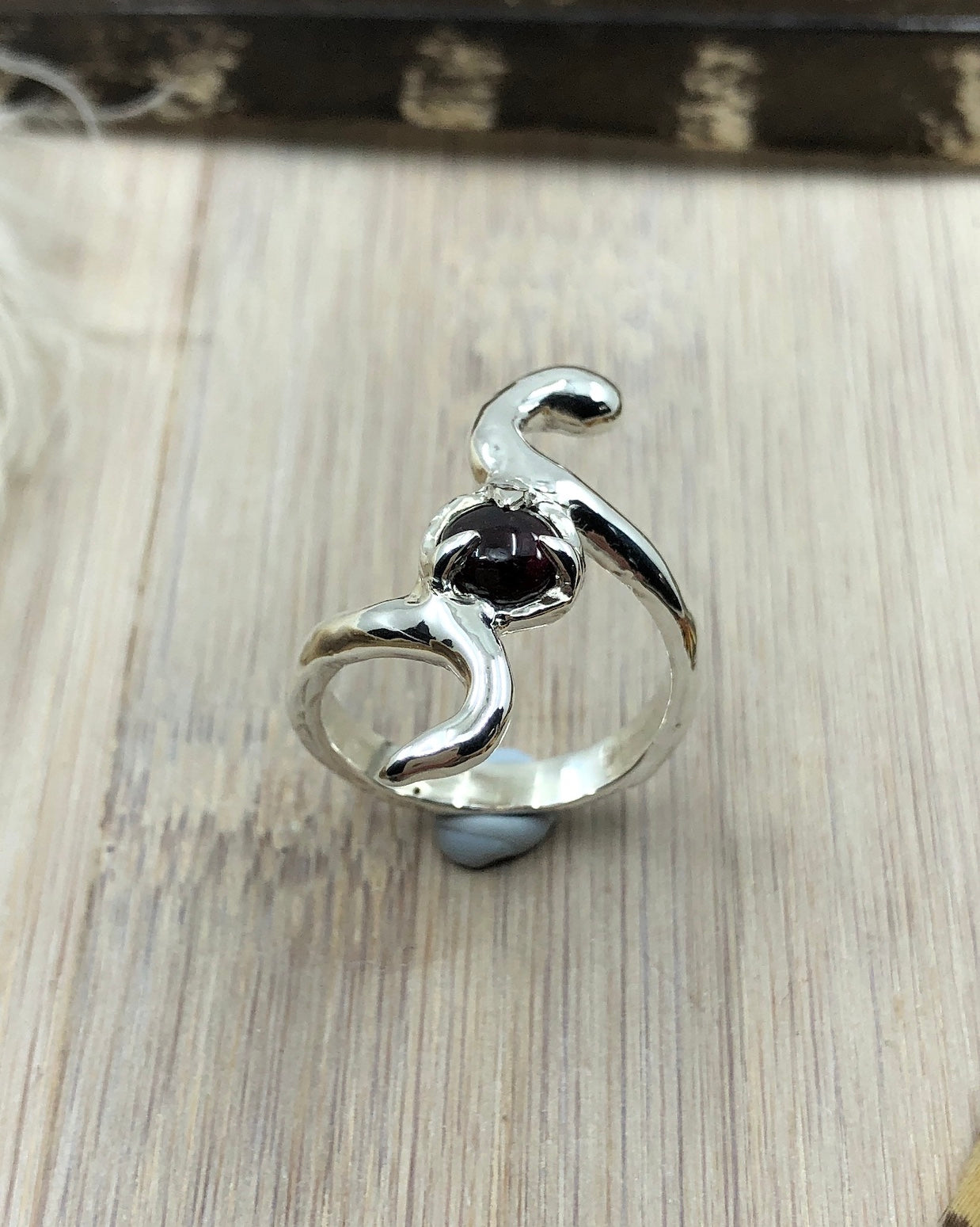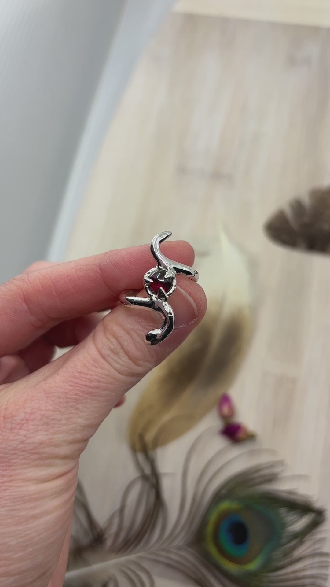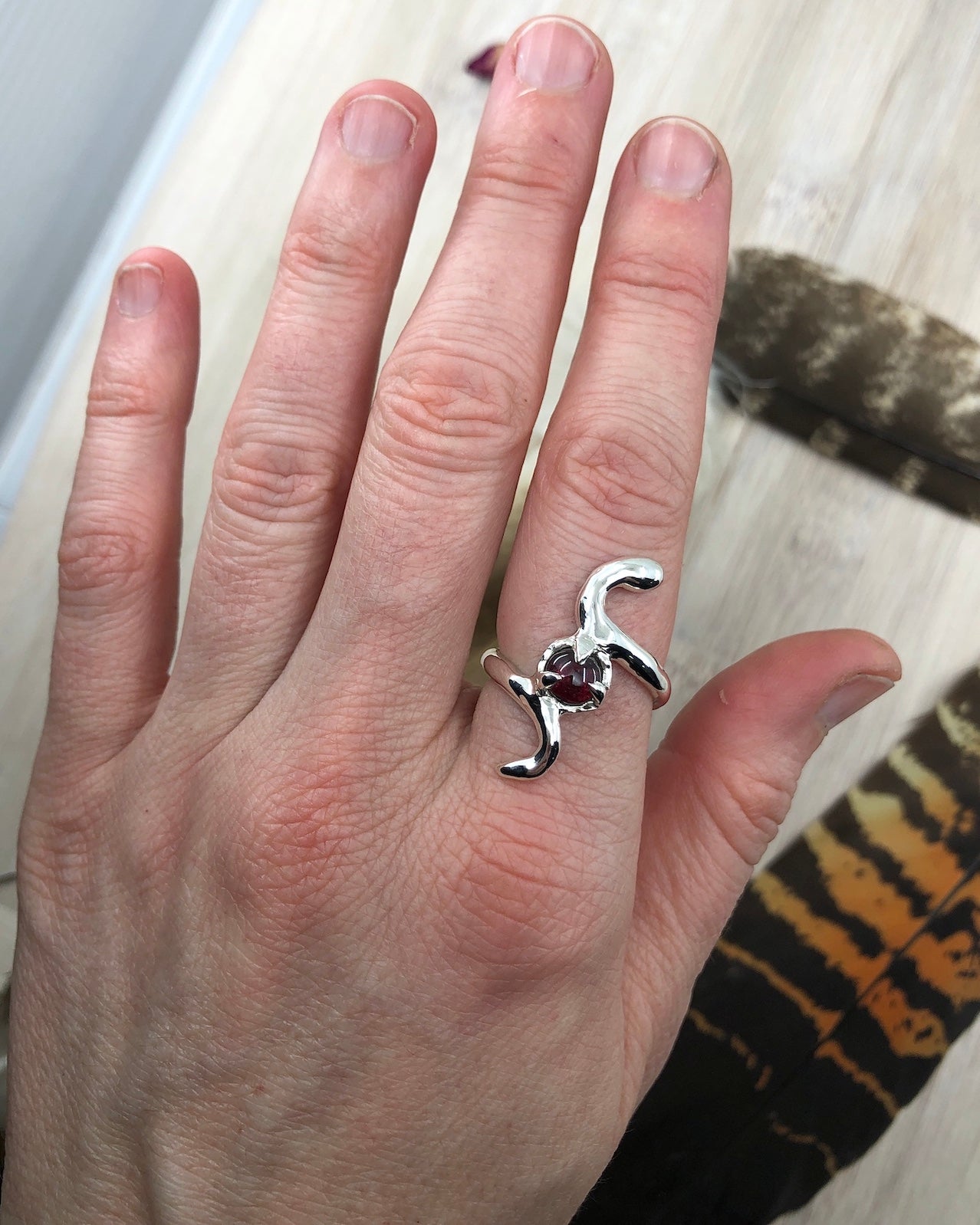 This Sterling Silver Garnet Snake Ring has been hand sculpted using the lost wax jewellery method & cast in solid sterling silver.