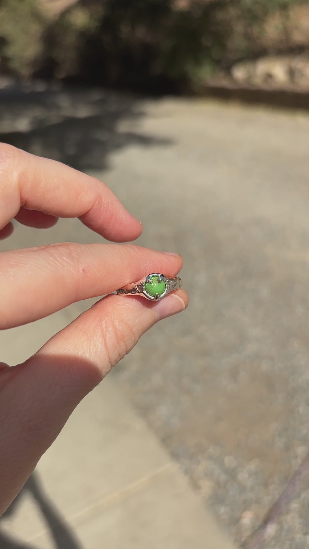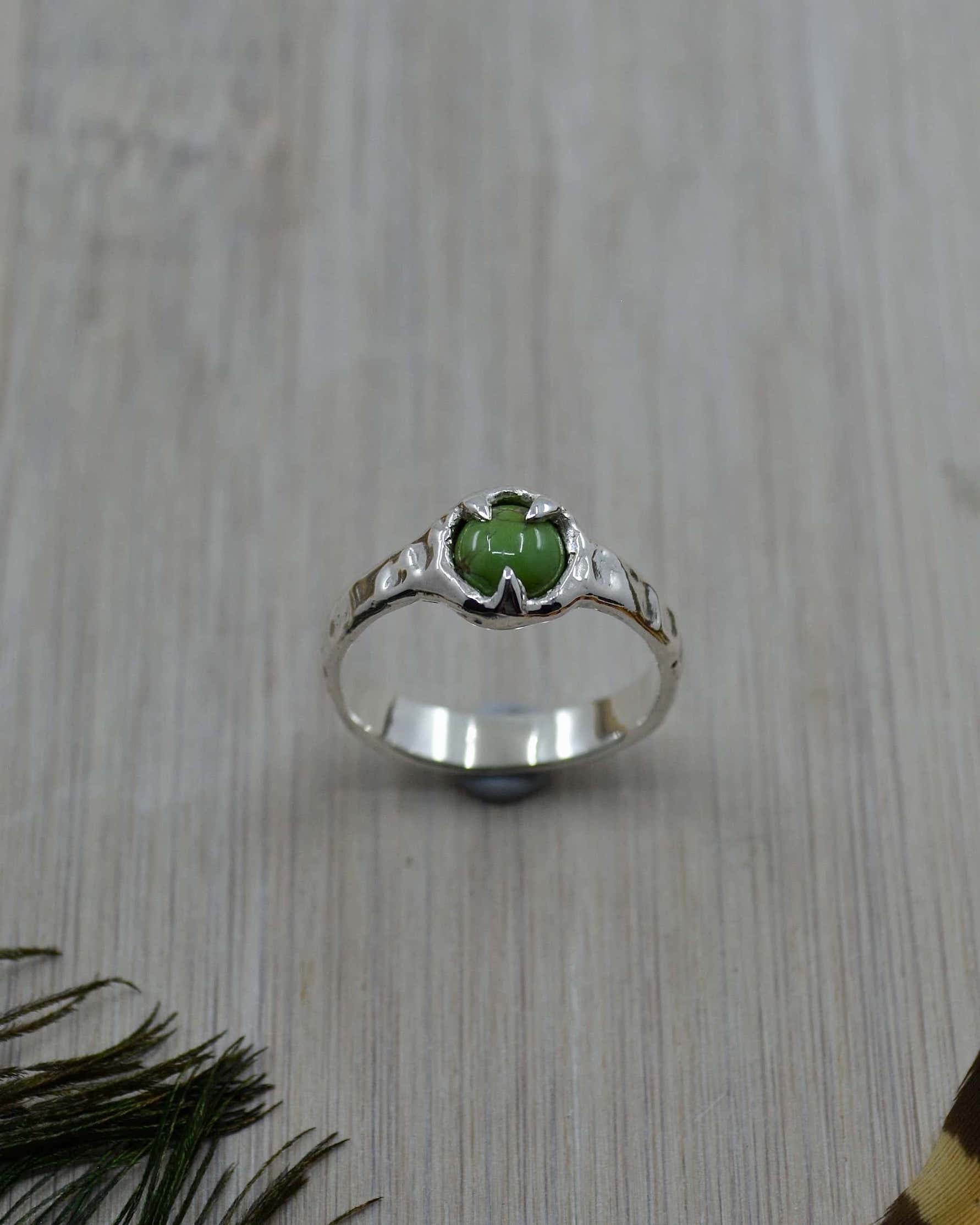 This Sterling Silver Sonoran Gold Green Turquoise Ring has been hand sculpted using the lost wax jewellery method & cast in solid sterling silver. It was created with a molten like effect on the band, giving its unique look.