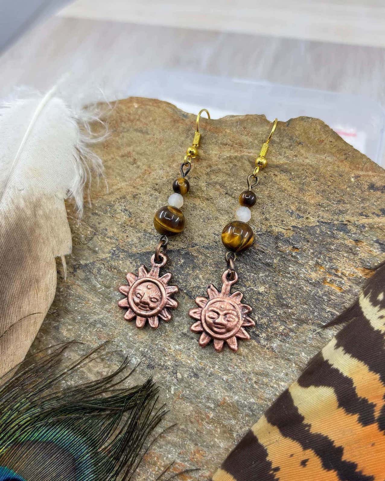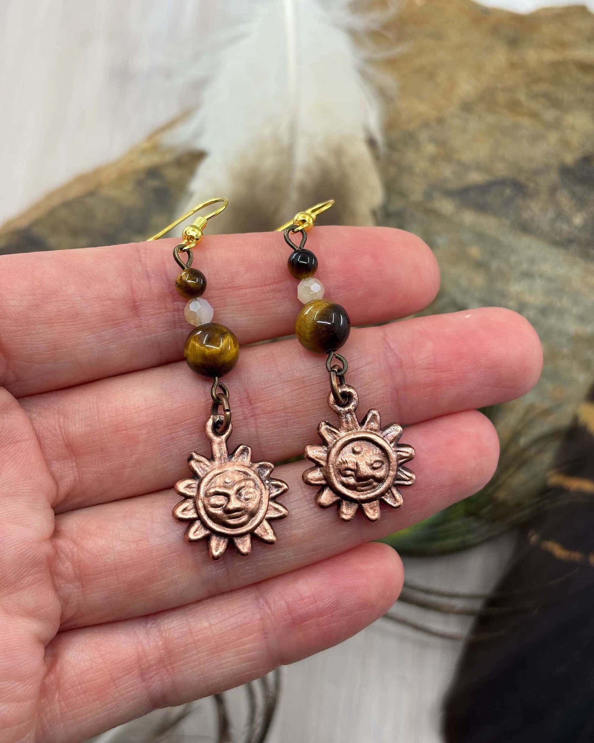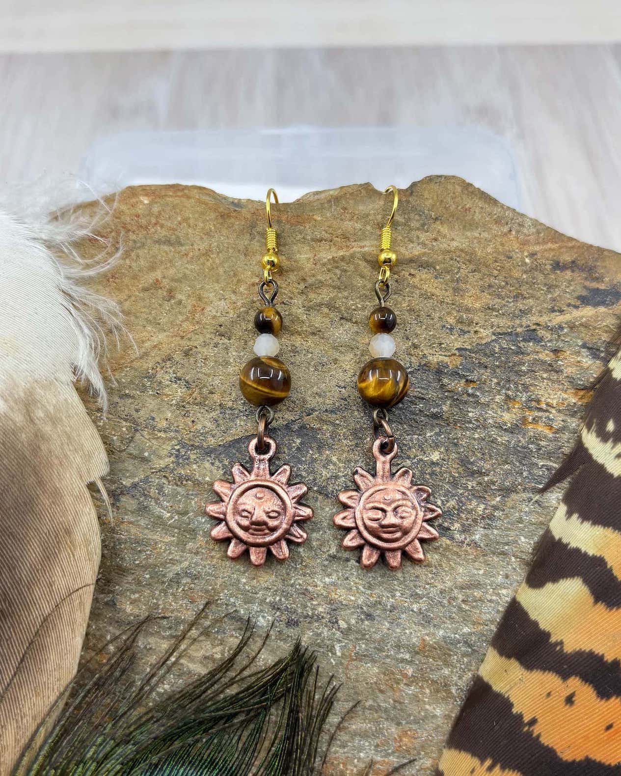 These Tiger Eye Sun Earrings have been created using the art of electroforming.